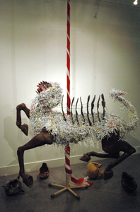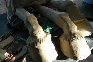 And the horses legs; because it is a monster. The horses of the Apocalypse, Durer’s drawings. The race of time, war, famine and death, perpetrated by the institutions of history. The scratches and gouges on the ceramic legs, the rusty scraps of welded metal that are the joints, the oversized hooves to crush underfoot.