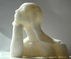 The other aspect was that despite the appealing translucency and impermanence of the sugar, and my pleasure in appropriating the forms of Gislebertus, ultimately these forms did not ‘do it’ for me. The enclosed, complete figure was too solid. The hollowness that I insisted upon, despite the added difficulties, seemed like an addition to the design and was not integrally part of it. The form would have looked just the same if it were solid because it had in fact evolved from solid Romanesque stone sculpture. The evocative figure of Eve was too caught up in well established meanings which made me complicit with them, despite my slippage intentions.